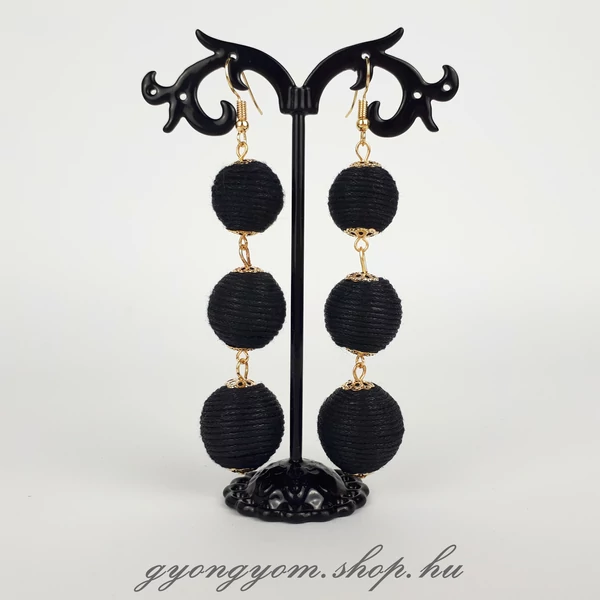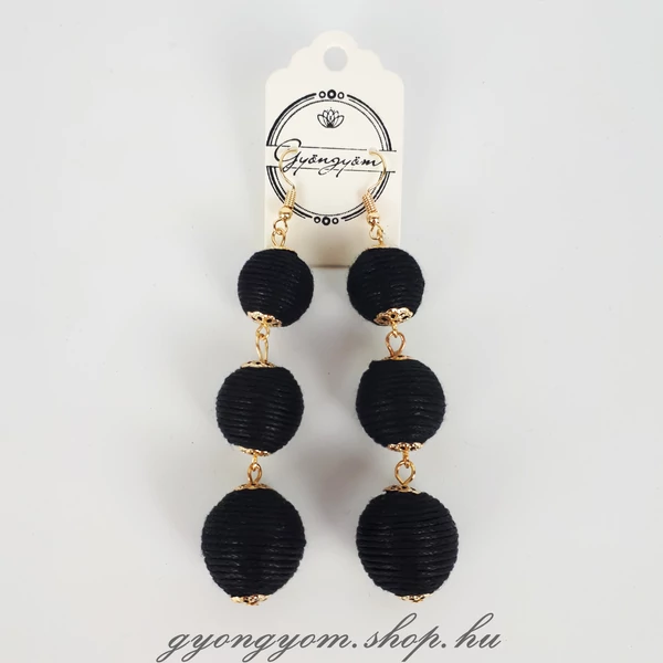 Fekete gömbökkel díszített fülbevaló, arany színű fém részekkel.