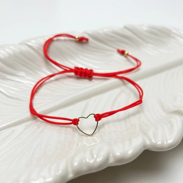Arany színű szívvel díszített, piros zsinórból készült barátság karkötő szett.