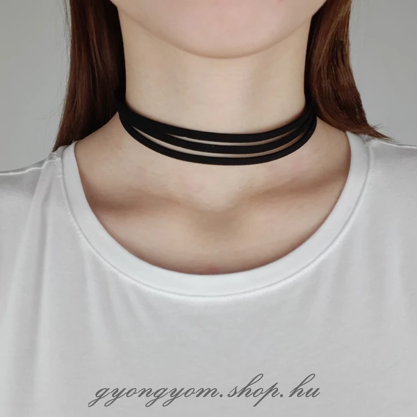 Fekete színű alapdarab, minden nyaklánc kollekcióba kötelező! Három vékony pántból áll, ezüst színű kapoccsal összefogva.